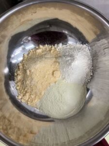 ➁白玉粉、小麦粉、粉チーズを合わせ、油と牛乳を加え混ぜる