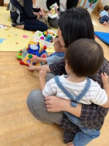 保育園のおもちゃってどんなものがあるのかなと、実際に遊ぶこともできます。
