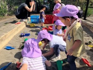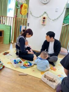 地域のお友達が保育園に遊びに来て、同年齢の子ども達と遊んだり保育園のおもちゃで遊んだり、天気がいい日は散歩に出かけて公園で遊ぶこともあります。