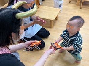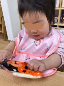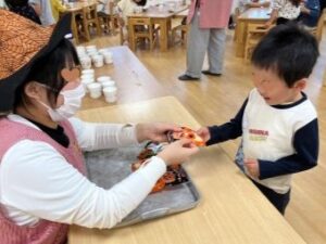袋の中のクッキーはおばけ・かぼちゃ・星の形になっていて、袋のイラストと見比べたり、お友だちと見せ合ったりして楽しそうでした。