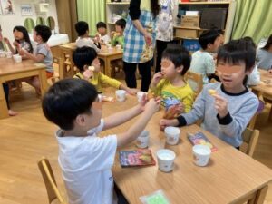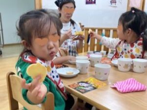 おやつは給食室の職員がひとりひとりにクッキーを手渡してくれています。