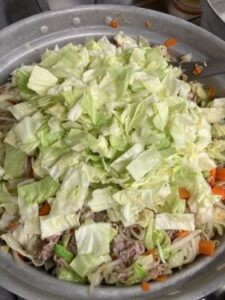 園では豚肉、キャベツ、にんじん、もやし、しいたけと具沢山で食べ応え満点、栄養満点のちゃんぽんを提供しています。