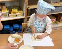 けやき組さんが親子クッキングでフルーツサンドを作りました。