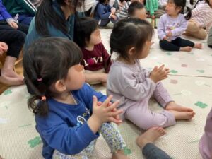 手を叩いたり、身体を揺らしたり、一緒に歌ったりして、元気いっぱいノリノリな子どもたち♪